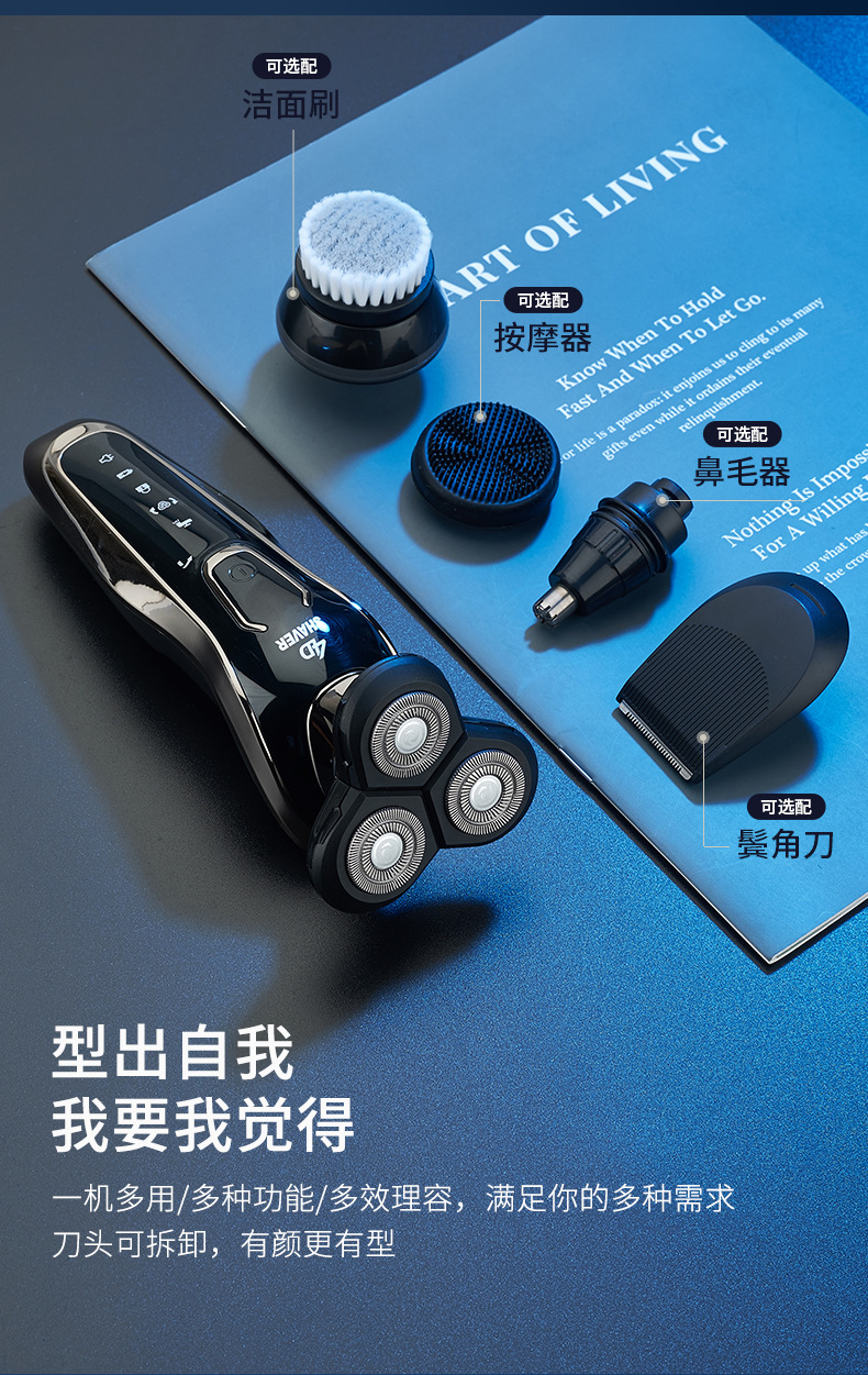 새로운 전기 면도기 충전식 면도기 세 블레이드 회전 면도기 세척